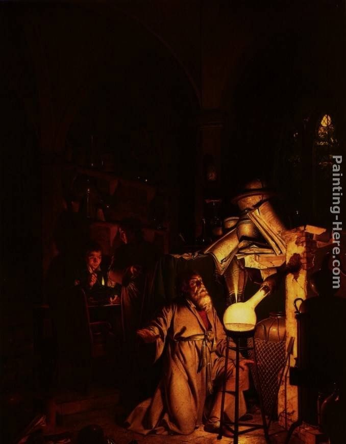 We offer 100% handmade reproduction of The Alchemist in Search of the Philosopher's Stone painting and frame