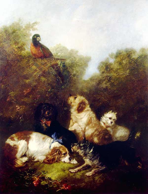 Beautiful, original hand-painted artwork in your home. King Charles Spaniel & Terrier based on the masters' works of George Armfield.