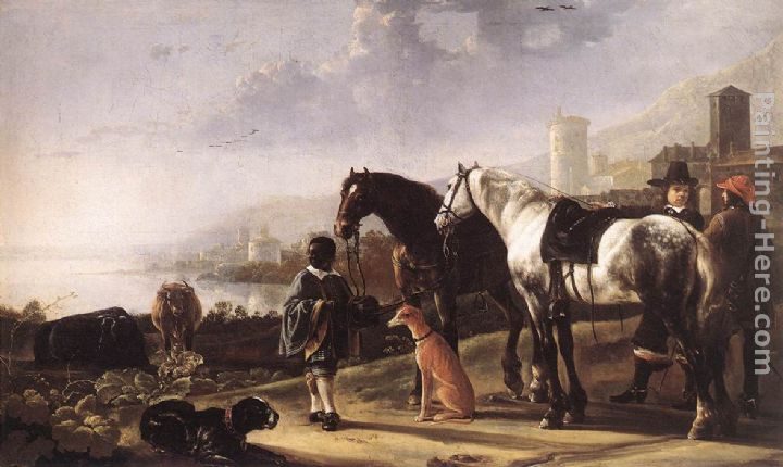 Aelbert Cuyp Landscape with Horse Trainers Painting