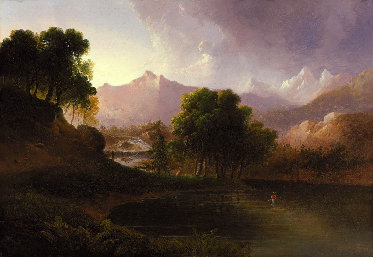 Beautiful, original hand-painted artwork in your home. Landscape with Stream and Mountains based on the masters' works of Thomas Doughty.