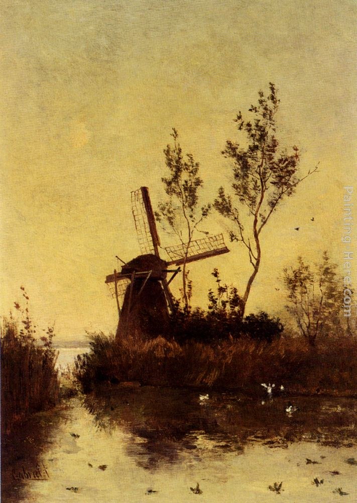 Paul Joseph Constantine Gabriel Paintings - Paul Joseph Constantine Gabriel Le Point Du Jour, Vue Prise Dans Les Environs De Amsterdam (Hollande) Painting
