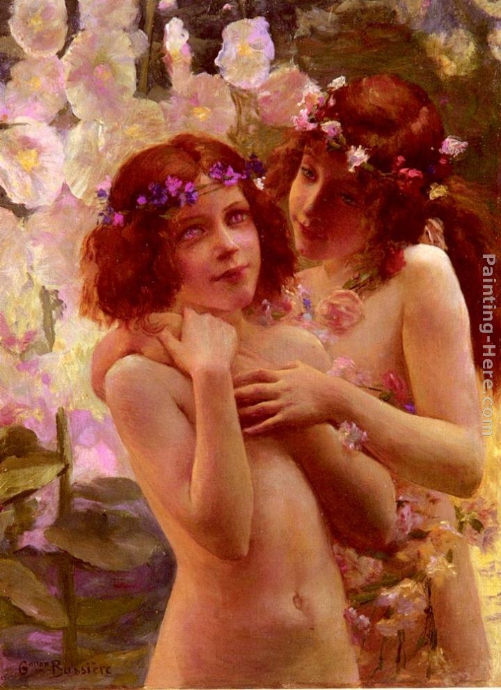 Gaston Bussiere Deux Enfants Aux Couronnes De Fleurs