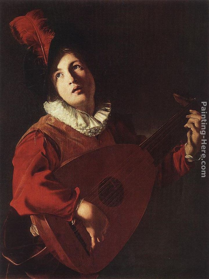 Beautiful, original hand-painted artwork in your home. Lute Playing Young based on the masters' works of Bartolomeo Manfredi.