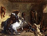 This Eugene Delacroix Marocan and his Horse painting is oil on canvas. We offer original oil painting, stretched canvas and large framed art, but do not offer poster, print or giclee for this Eugene Delacroix Marocan and his Horse.