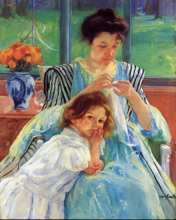 Beautiful, original hand-painted artwork in your home. Young Mother Sewing 1902 based on the masters' works of Mary Cassatt.