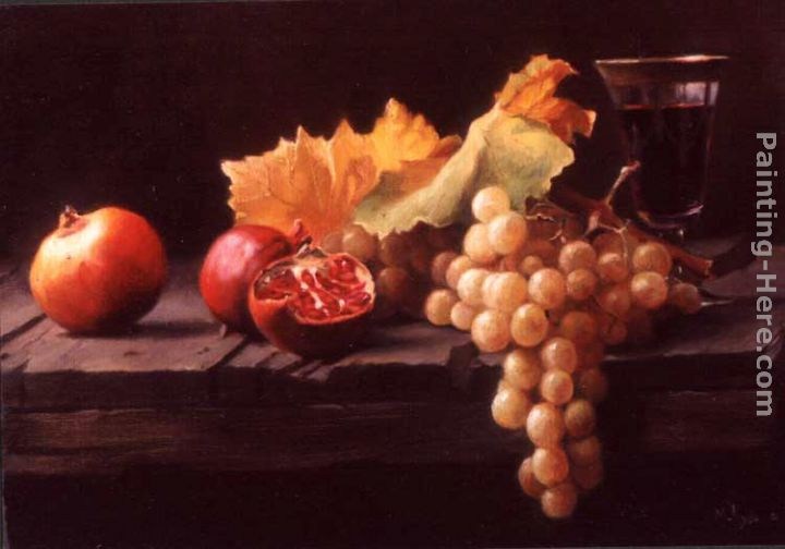 We offer 100% handmade reproduction of Still Life with Grapes and Pomegranates painting and frame