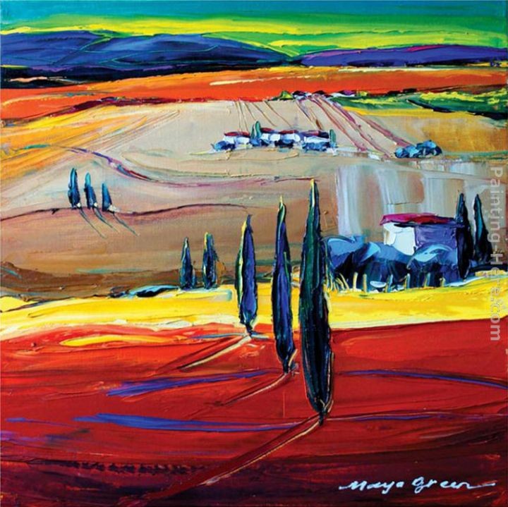 This Maya Green After the Rain painting is oil on canvas. We offer original oil painting, stretched canvas and large framed art, but do not offer poster, print or giclee for this Maya Green After the Rain.