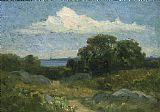 We offer 100% handmade reproduction of mountainous landscape with rock and stream in foreground painting and frame