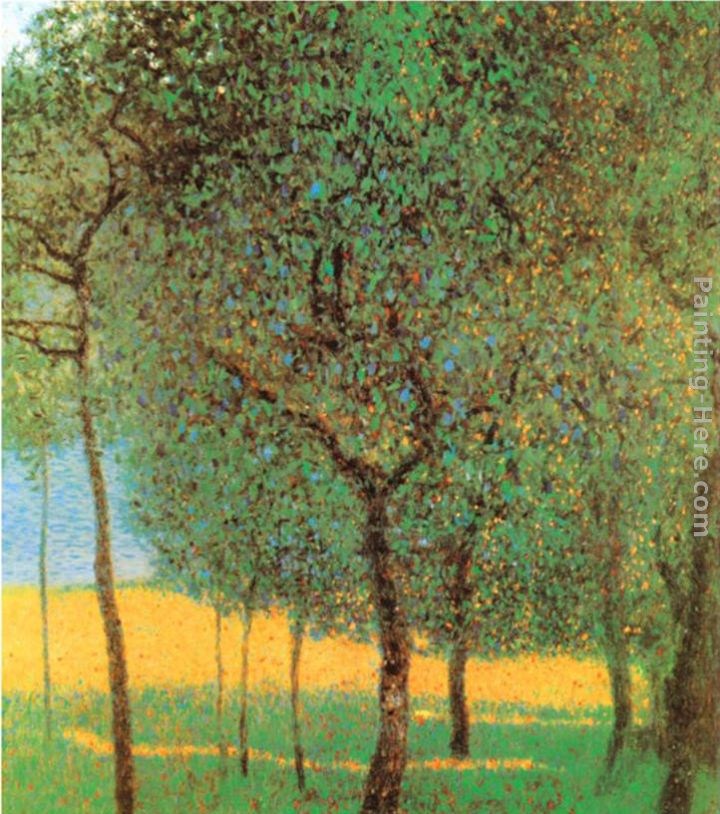 This Gustav Klimt Orchard with Roses painting is oil on canvas. We offer original oil painting, stretched canvas and large framed art, but do not offer poster, print or giclee for this Gustav Klimt Orchard with Roses.