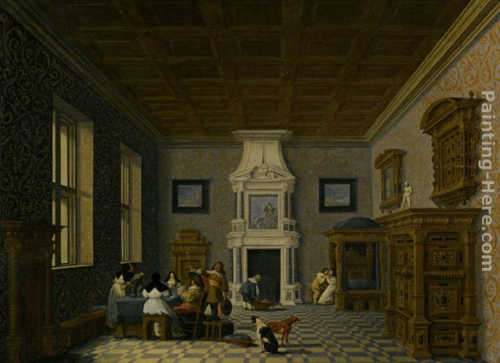 A Palace Interior with Cavaliers Cavorting with Nuns