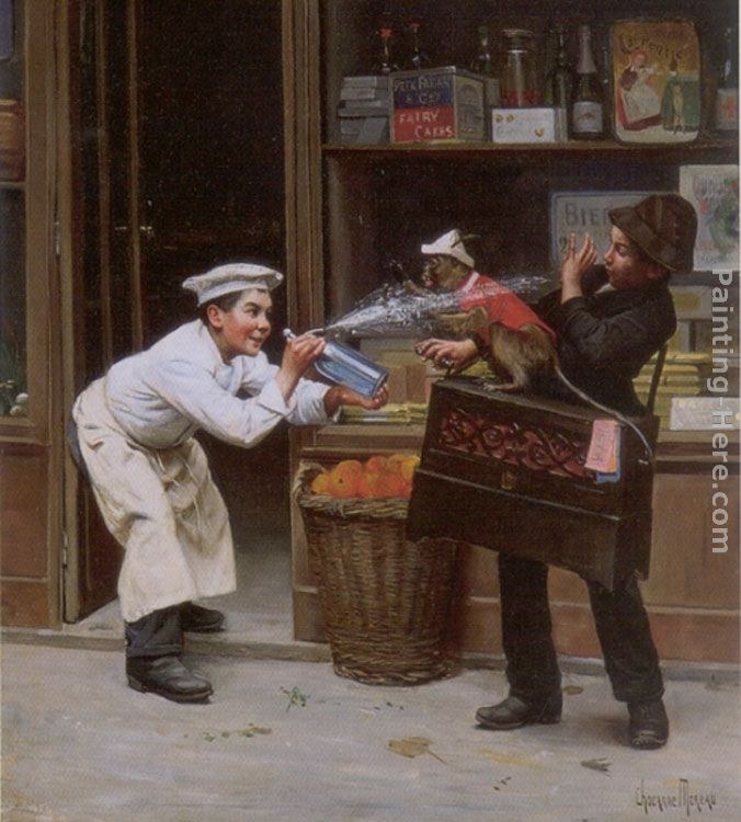Paul Charles Chocarne-Moreau Teasing the Monkey Painting