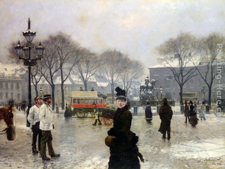 We offer 100% handmade reproduction of A Winter's Day on Kongens Nytorv Copenhagen painting and frame