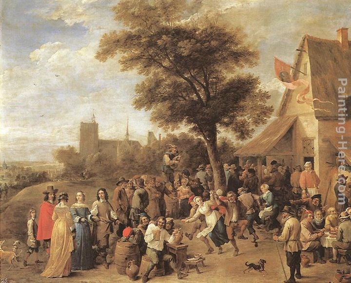 This David the Younger Teniers Peasants merrying outside an inn painting is oil on canvas. We offer original oil painting, stretched canvas and large framed art, but do not offer poster, print or giclee for this David the Younger Teniers Peasants merrying outside an inn.