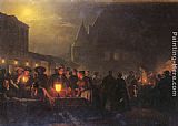 We offer 100% handmade reproduction of Selling game at the Groenmarkt in the Hague painting and frame