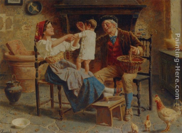 This Eugenio Zampighi Playing for Baby painting is oil on canvas. We offer original oil painting, stretched canvas and large framed art, but do not offer poster, print or giclee for this Eugenio Zampighi Playing for Baby.