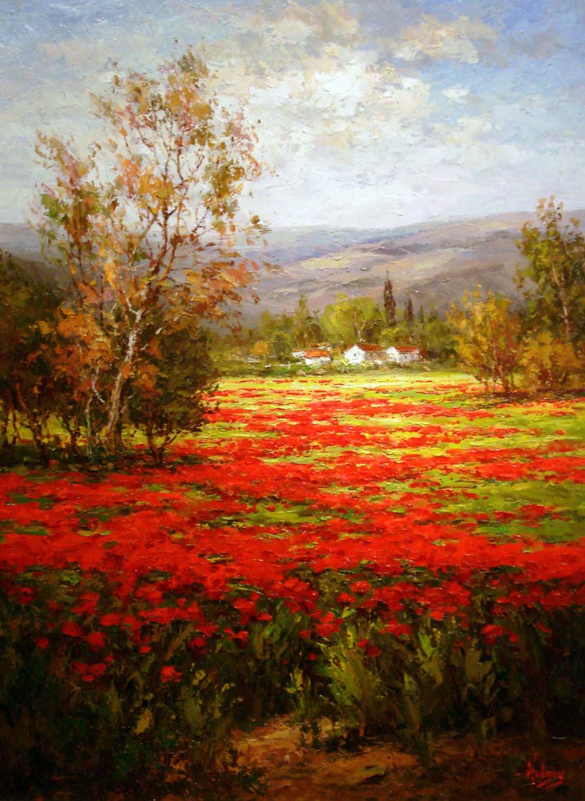 Beautiful, original hand-painted artwork in your home. Poppy Field Splendid Pathway based on the masters' works of Unknown Artist.