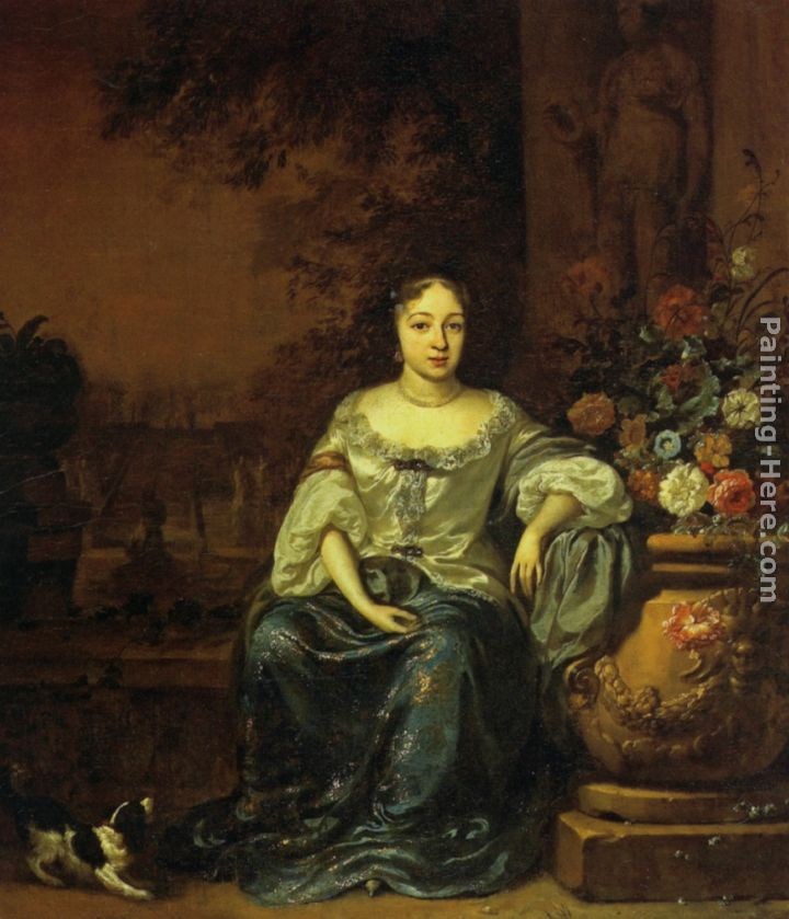 We offer 100% handmade reproduction of Portrait of a Lady Seated in a Garden with her Dog painting and frame