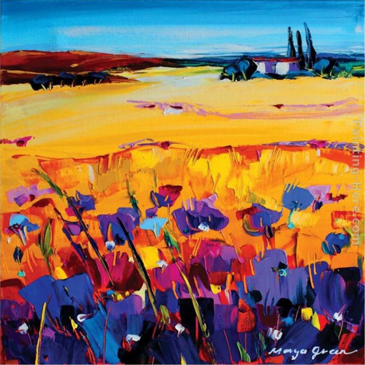 This Maya Green Quiet of the Pasture painting is oil on canvas. We offer original oil painting, stretched canvas and large framed art, but do not offer poster, print or giclee for this Maya Green Quiet of the Pasture.