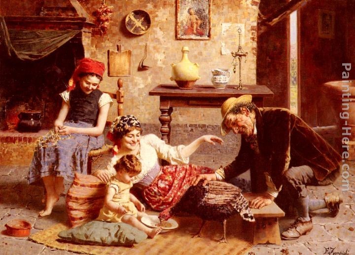 This Eugenio Zampighi Reading the News painting is oil on canvas. We offer original oil painting, stretched canvas and large framed art, but do not offer poster, print or giclee for this Eugenio Zampighi Reading the News.