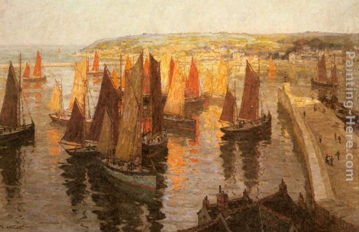 This Terrick Williams Red and Gold Brixham painting is oil on canvas. We offer original oil painting, stretched canvas and large framed art, but do not offer poster, print or giclee for this Terrick Williams Red and Gold Brixham.