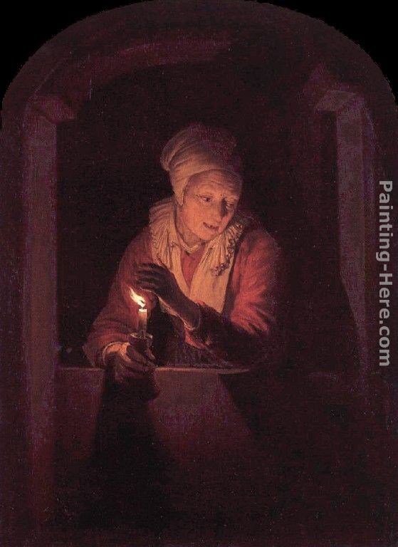This Gerrit Dou Resting Dog painting is oil on canvas. We offer original oil painting, stretched canvas and large framed art, but do not offer poster, print or giclee for this Gerrit Dou Resting Dog.