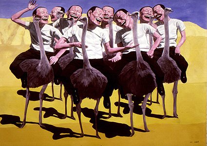 This Yue Minjun Rockery-1 painting is oil on canvas. We offer original oil painting, stretched canvas and large framed art, but do not offer poster, print or giclee for this Yue Minjun Rockery-1.