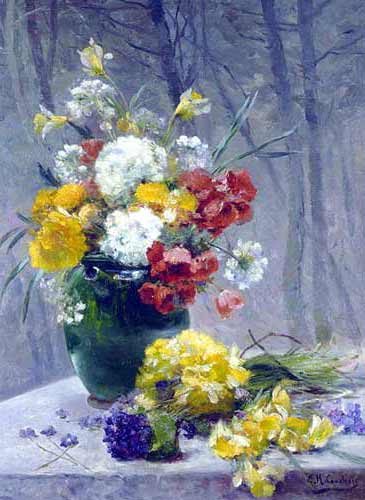 Eugene Henri Cauchois Still Life of Flowers in a Basket