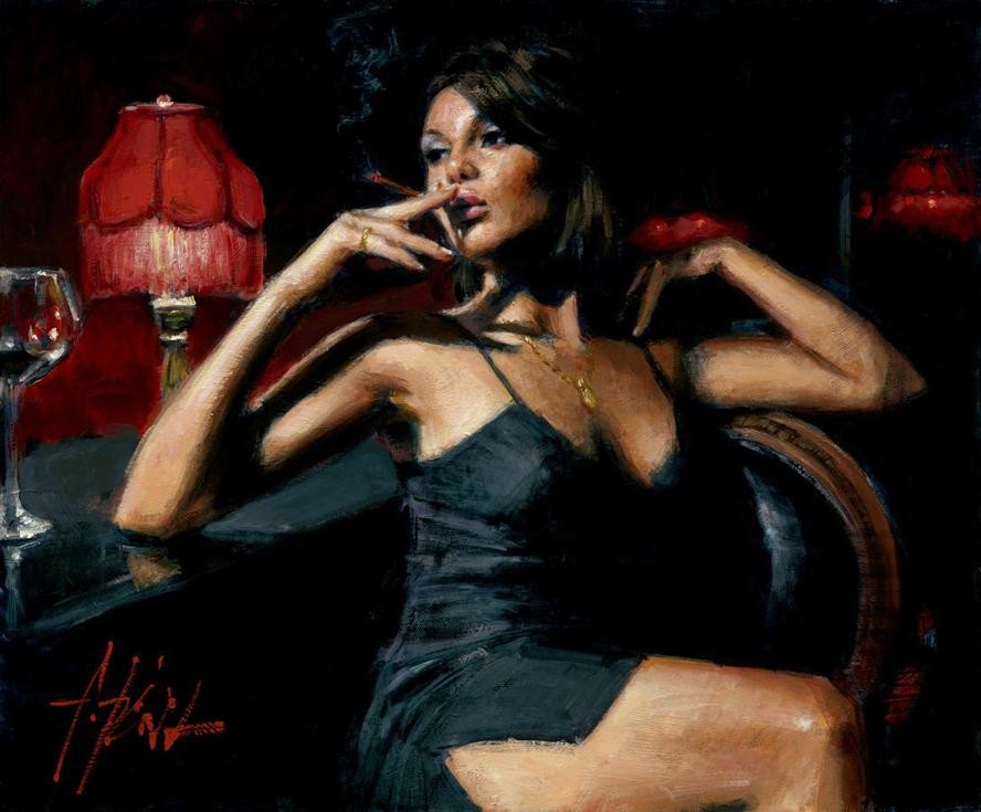 This Fabian Perez Saba at Las Brujas II painting is oil on canvas. We offer original oil painting, stretched canvas and large framed art, but do not offer poster, print or giclee for this Fabian Perez Saba at Las Brujas II.