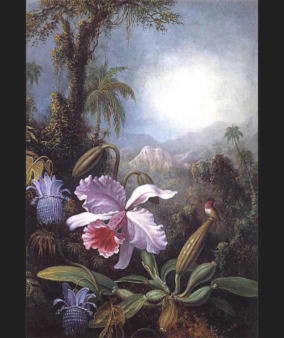 Martin Johnson Heade Two Hummingbirds and a PinkOrchid