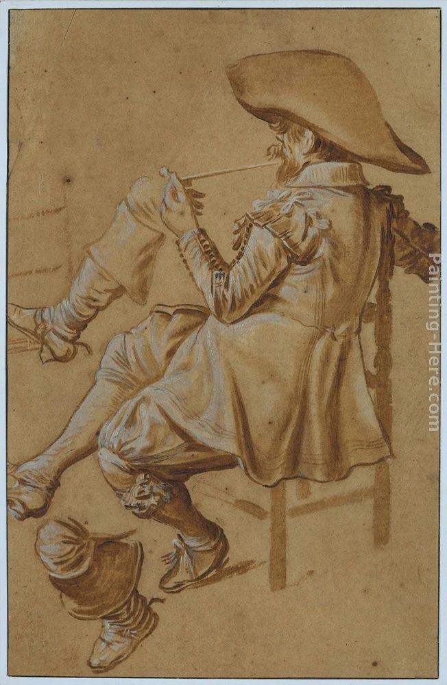 Beautiful, original hand-painted artwork in your home. Seated Man Smoking a Pipe based on the masters' works of Dirck Hals.