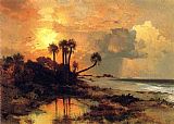 This Thomas Moran Slave Hunt, Dismal Swamp, Virginia painting is oil on canvas. We offer original oil painting, stretched canvas and large framed art, but do not offer poster, print or giclee for this Thomas Moran Slave Hunt, Dismal Swamp, Virginia.