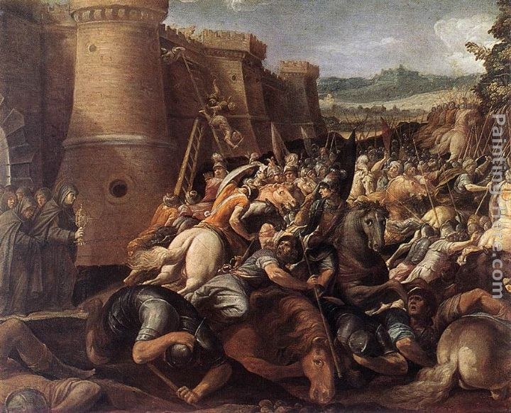 We offer 100% handmade reproduction of St Clare with the Scene of the Siege of Assisi painting and frame