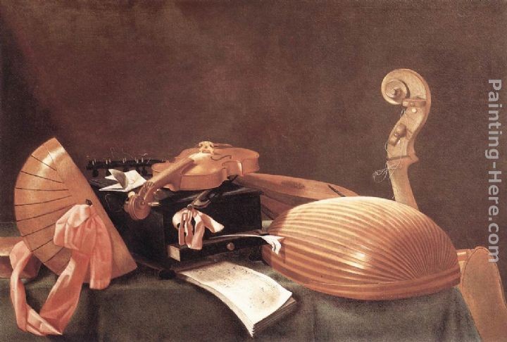 We offer 100% handmade reproduction of Still-Life with Musical Instruments painting and frame