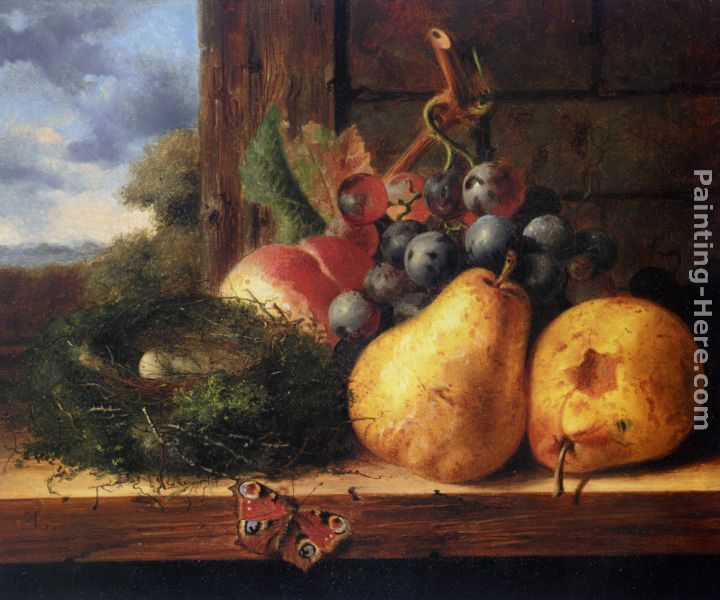 We offer 100% handmade reproduction of Still life with a birds nest and fruit painting and frame