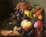 Edward Ladell Still Life with Fruit, Flowers and a Bird's Nest