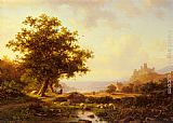 Frederik Marianus Kruseman An Extensive River Landscape With A Castle On A Hill Beyond