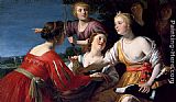 Beautiful, original hand-painted artwork in your home. Supper With The Minstrel And His Lute based on the masters' works of Gerrit van Honthorst.