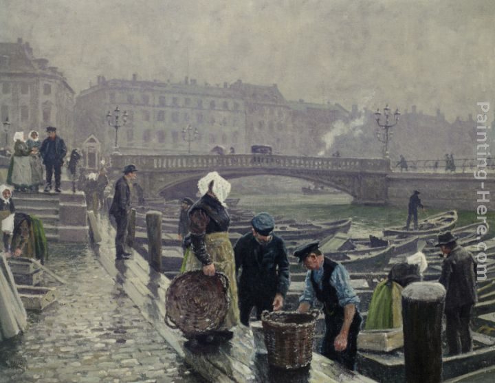 Paul Gustave Fischer The Fish Market at Gammelstrand Copenhagen Painting