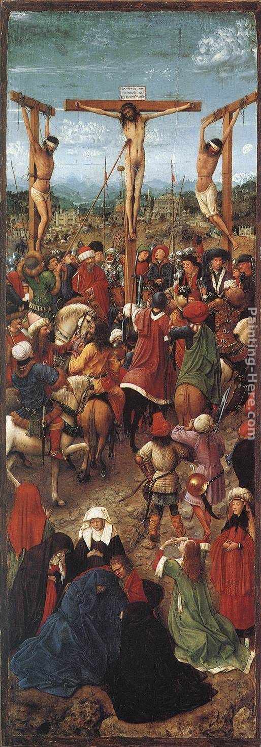 We offer 100% handmade reproduction of The Ghent Altarpiece Adoration of the Lamb [detail left] painting and frame