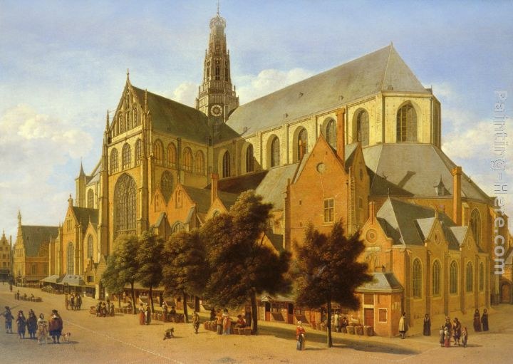 We offer 100% handmade reproduction of The Market Square at Haarlem with the St Bavo painting and frame