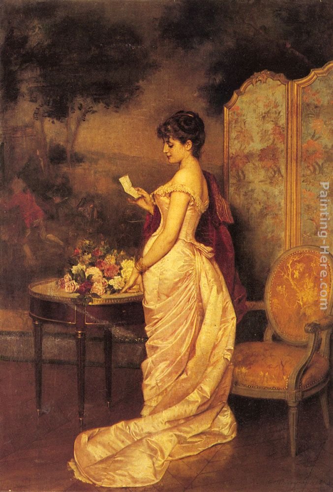 This Auguste Toulmouche The Reluctant Bride painting is oil on canvas. We offer original oil painting, stretched canvas and large framed art, but do not offer poster, print or giclee for this Auguste Toulmouche The Reluctant Bride.