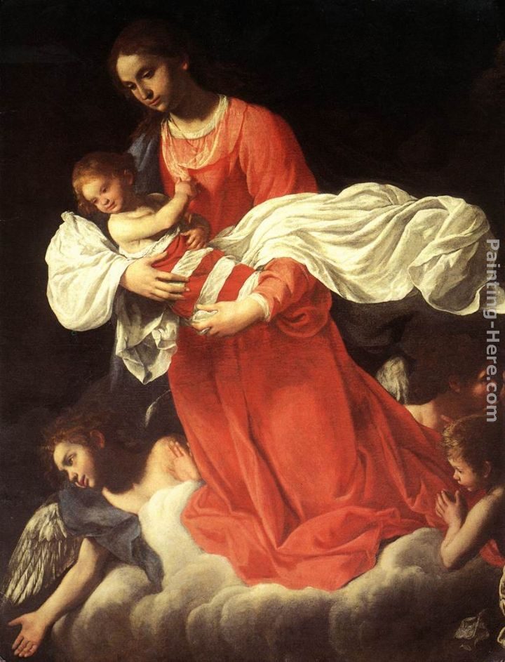 This Giovanni Baglione The Virgin and the Child with Angels painting is oil on canvas. We offer original oil painting, stretched canvas and large framed art, but do not offer poster, print or giclee for this Giovanni Baglione The Virgin and the Child with Angels.