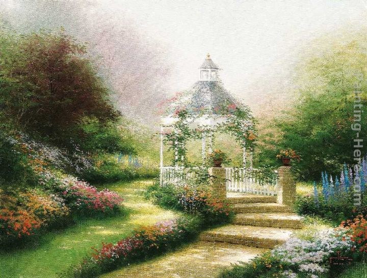 Beautiful, original hand-painted artwork in your home. Hidden Gazebo based on the masters' works of Thomas Kinkade.