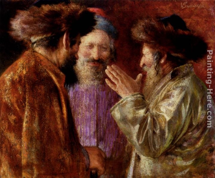 This Isaac Snowman Three Rabbis Of Jerusalem painting is oil on canvas. We offer original oil painting, stretched canvas and large framed art, but do not offer poster, print or giclee for this Isaac Snowman Three Rabbis Of Jerusalem.