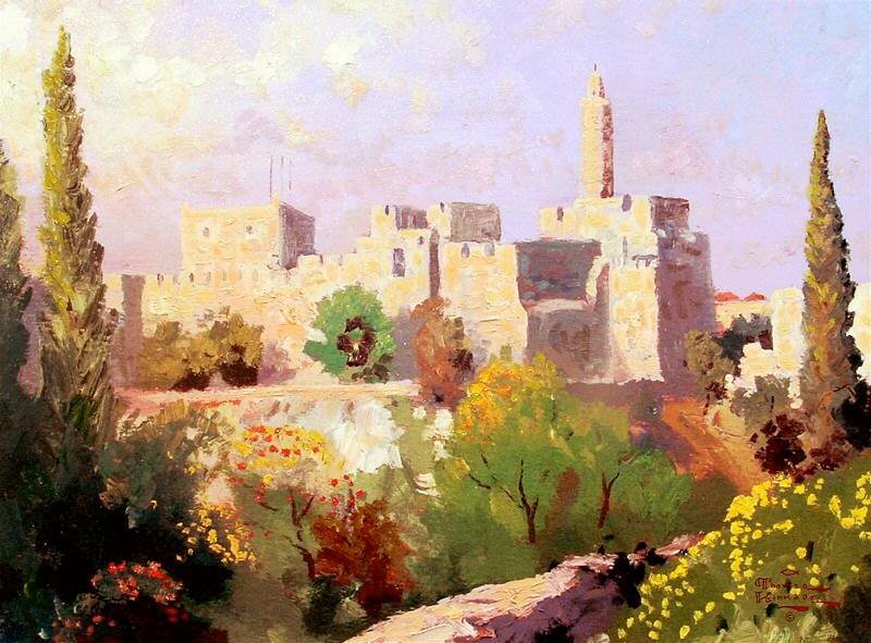 We offer 100% handmade reproduction of Tower of David painting and frame