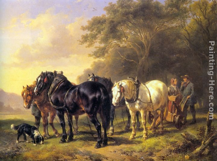 Beautiful, original hand-painted artwork in your home. Two Horses By A Stable based on the masters' works of Wouterus Verschuur Jr.