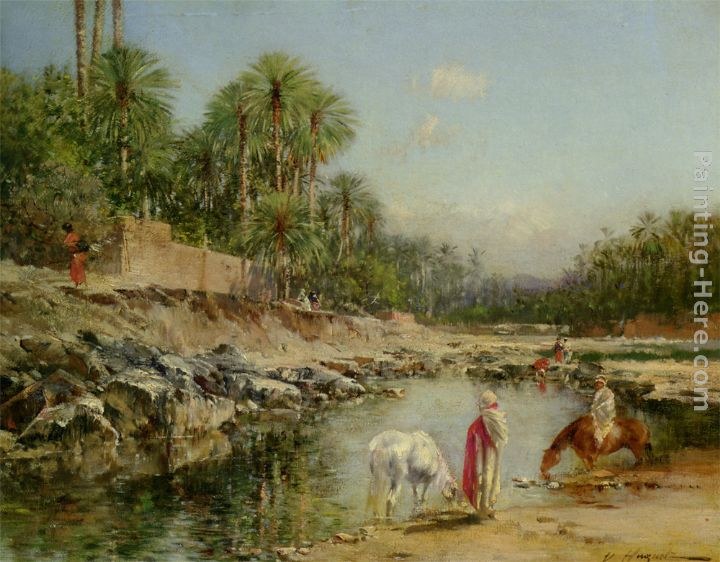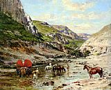 Victor Pierre Huguet Figures Standing by a Caravan Painting