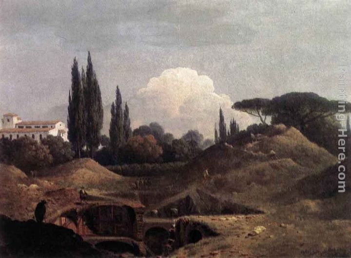 We offer 100% handmade reproduction of View From Ponte Loreto, An Antique Bridge Near Nettuno painting and frame