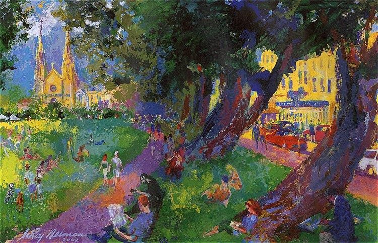 This Leroy Neiman Washington Square Park painting is oil on canvas. We offer original oil painting, stretched canvas and large framed art, but do not offer poster, print or giclee for this Leroy Neiman Washington Square Park.