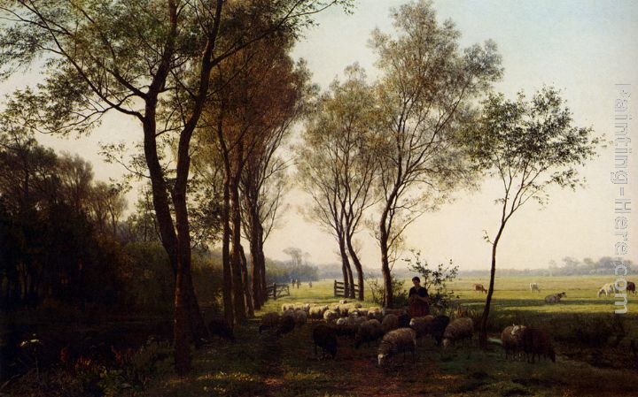 Julius Jacobus Van De Sande Bakhuyzen A Shepherdess And Her Flock On A Country Lane
